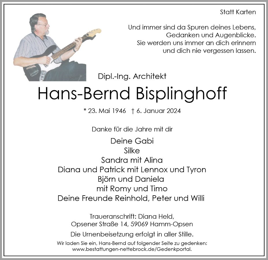 Hans-Bernd Bisplinghoffgestorben am 6. Januar 2024