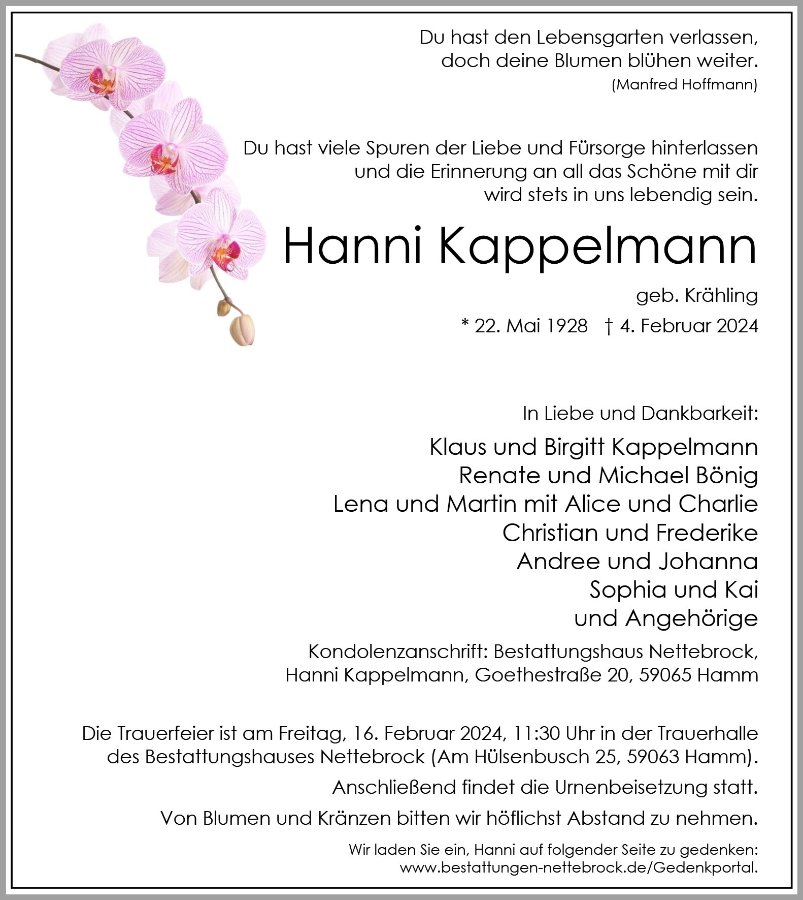 Es gibt im Leben für alles eine Zeit. Eine Zeit der Freude, der Stille, der Trauer und eine Zeit der dankbaren Erinnerung.