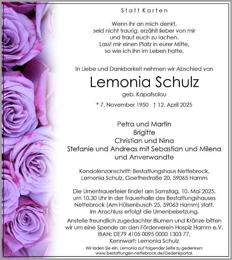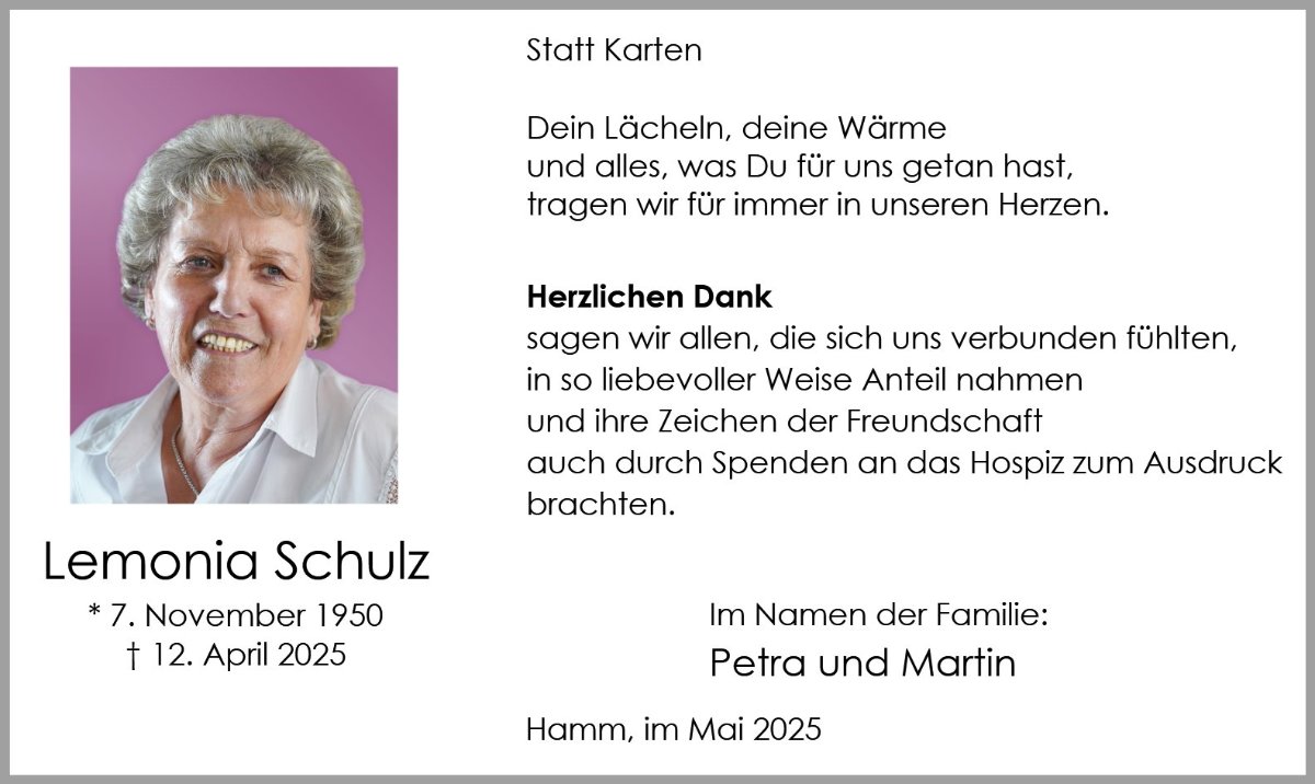 Lemonia Schulzgestorben am 12. April 2025