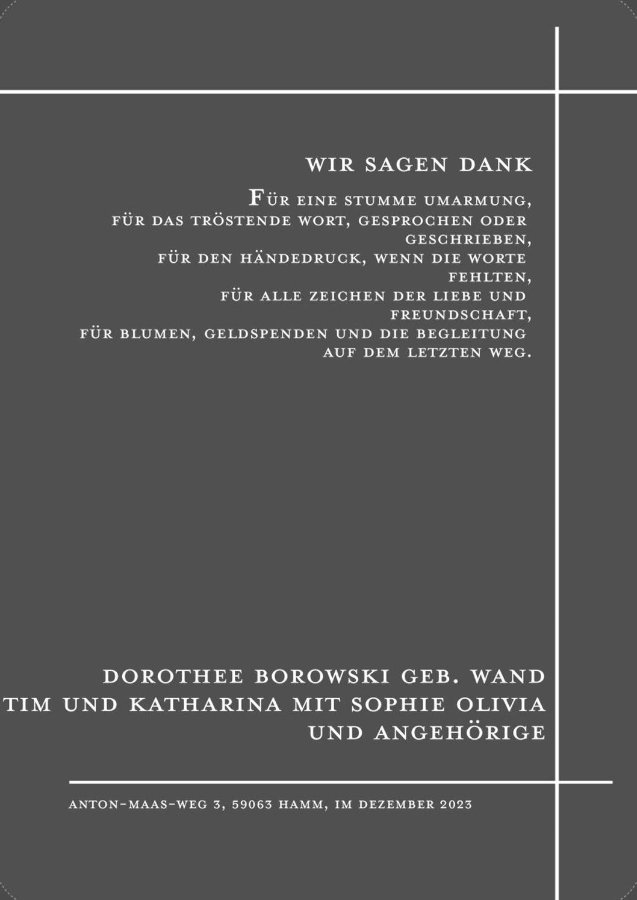 Ihnen wünsche ich Kraft und viele wunderschöne Erinnerungen.