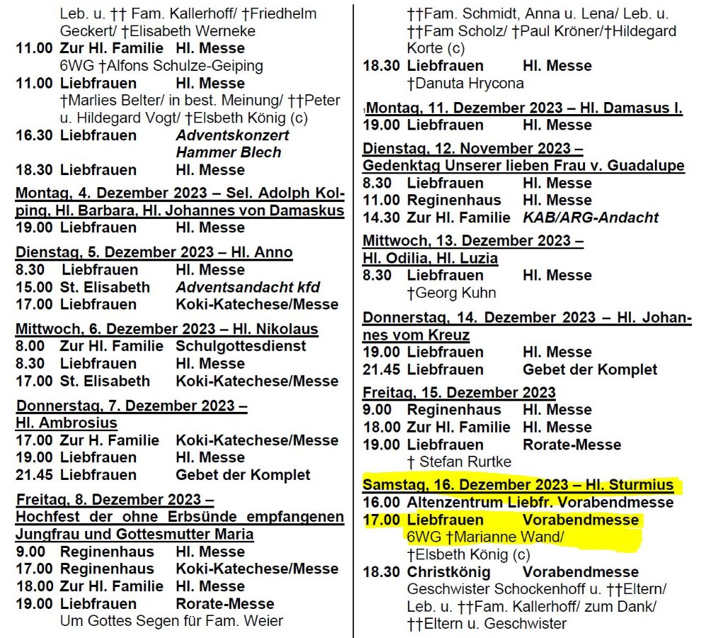 Samstag, 16. Dezember 2023 17.00 Uhr