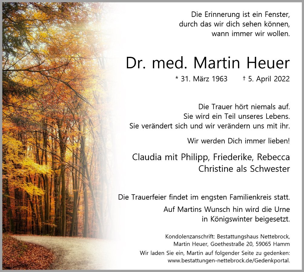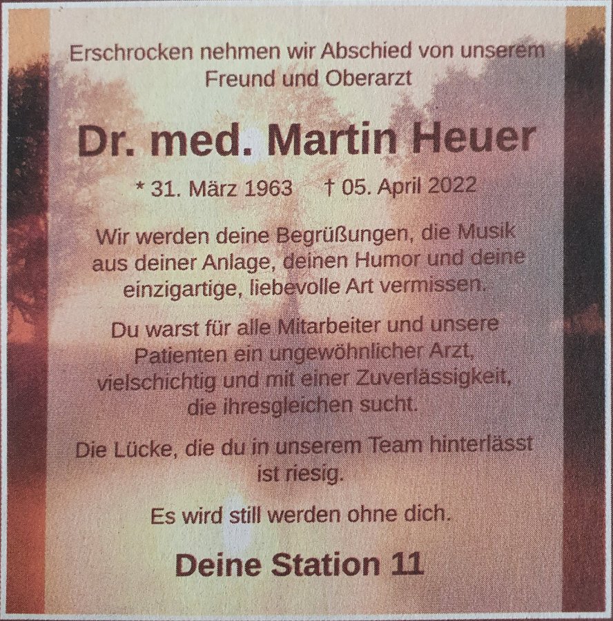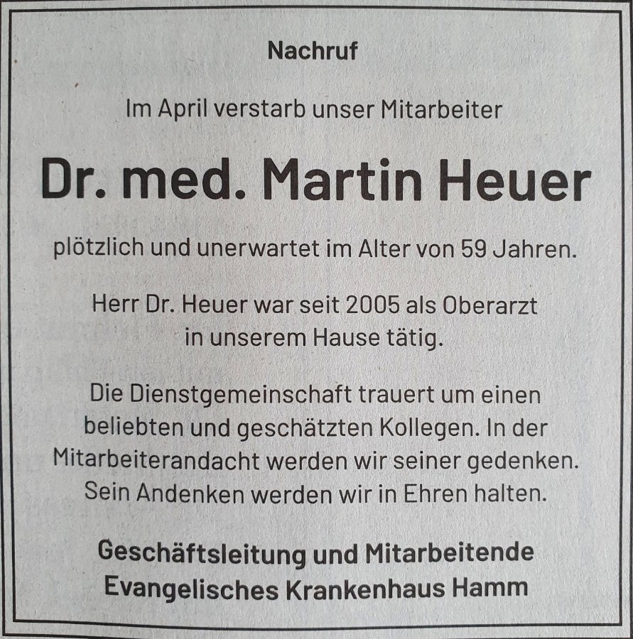 Dr. med. Martin Heuergestorben am 5. April 2022